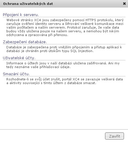 Modul pro ocenění nabídkové ceny na stránkách xc4.cz byl kontrolován ze strany ÚOHS ve vztahu k vyhlášce 230/2012 a bylo konstatováno, že zabezpečení dat je dostatečné. Více o zabezpečení dat v souboru xc4_ochrana_dat.jpeg v příloze této zprávy.