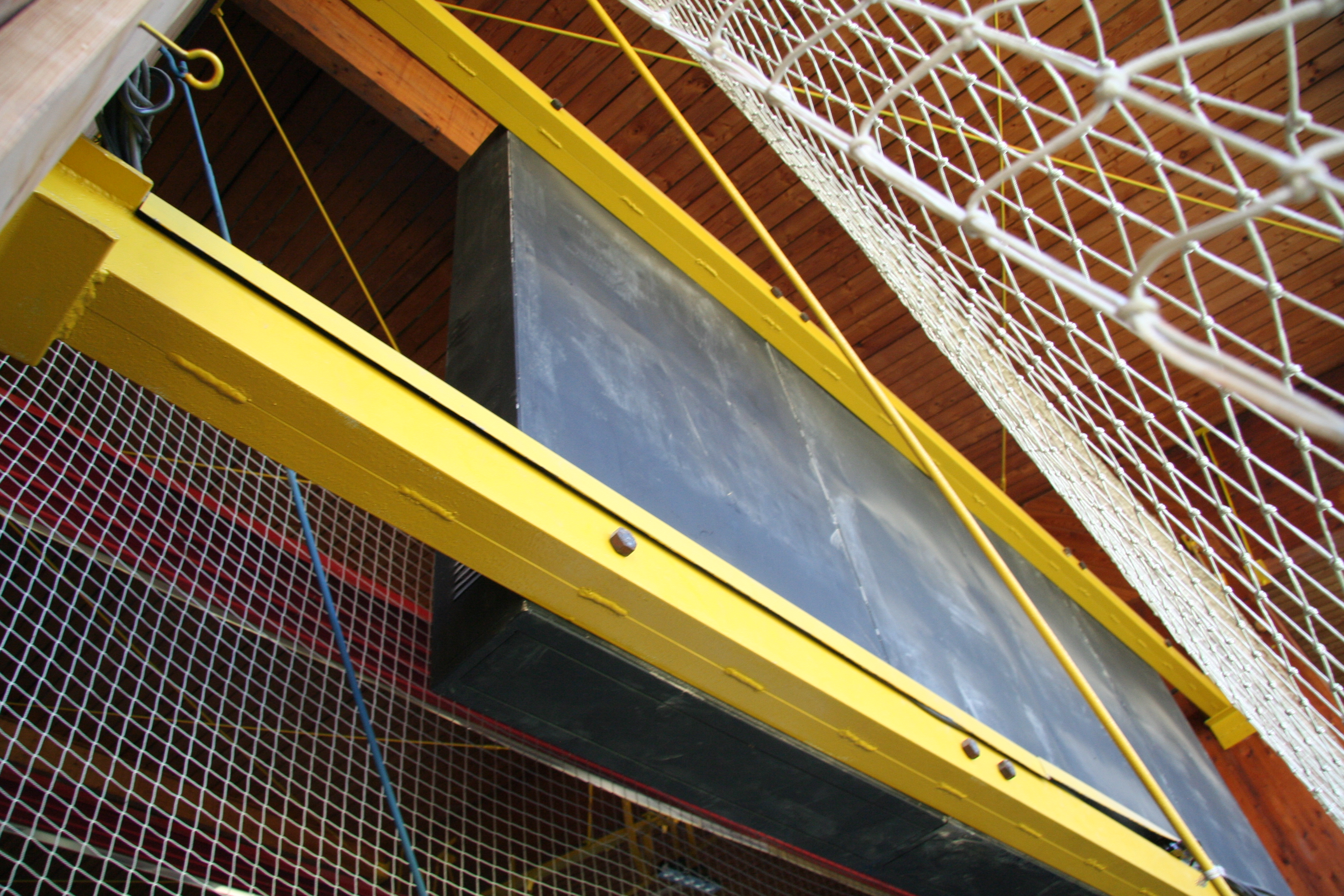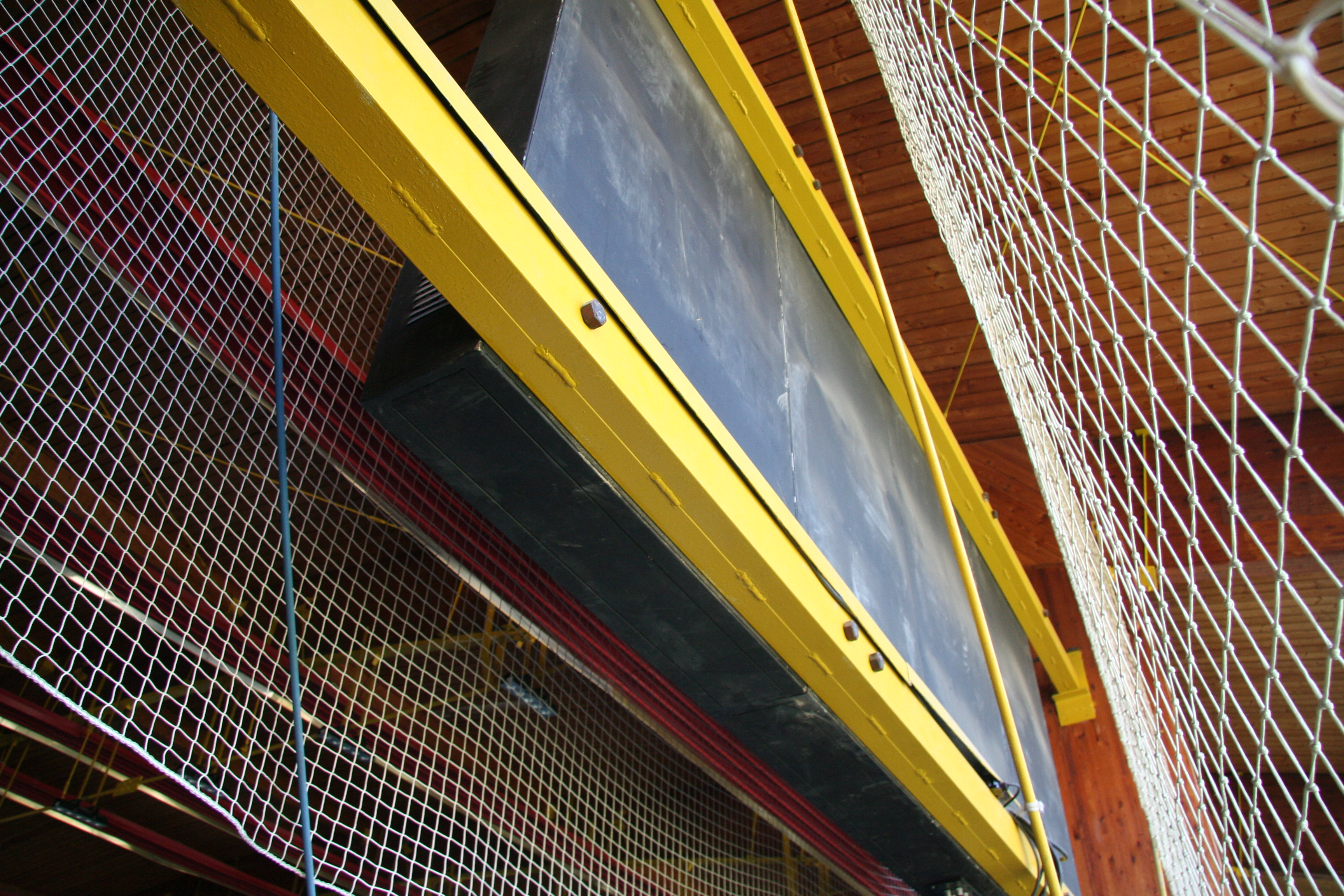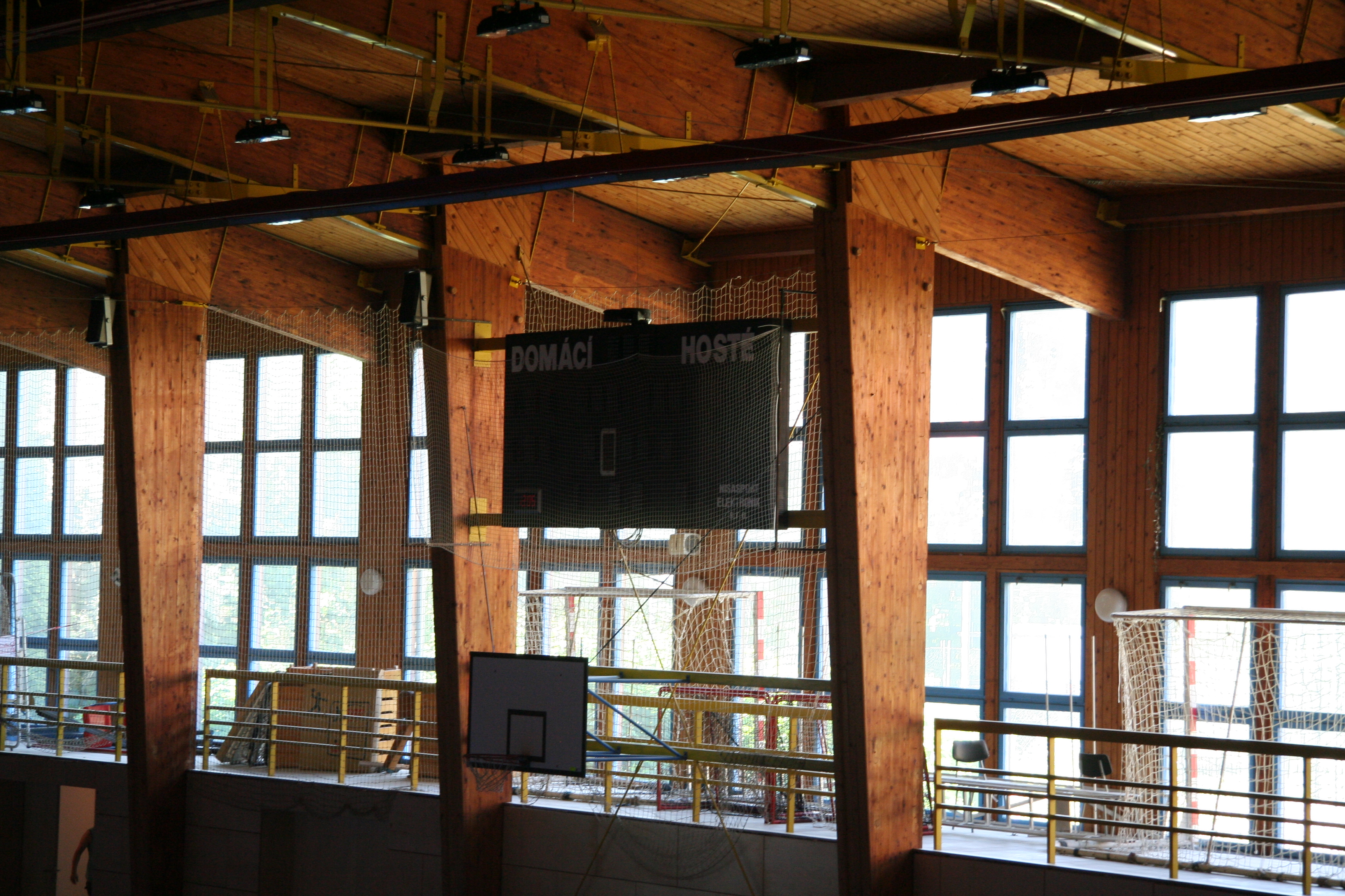 2)Stávající rám je dostatečně pevný, je ukotvený do 2 sloupů, stávající výsledková tabule má podobnou hmotnost. Dodavatel nemusí využít možnost stávajícího rámu, může dodat vlastní rám a ukotvit jej do sloupů - sloupy jsou nosné.