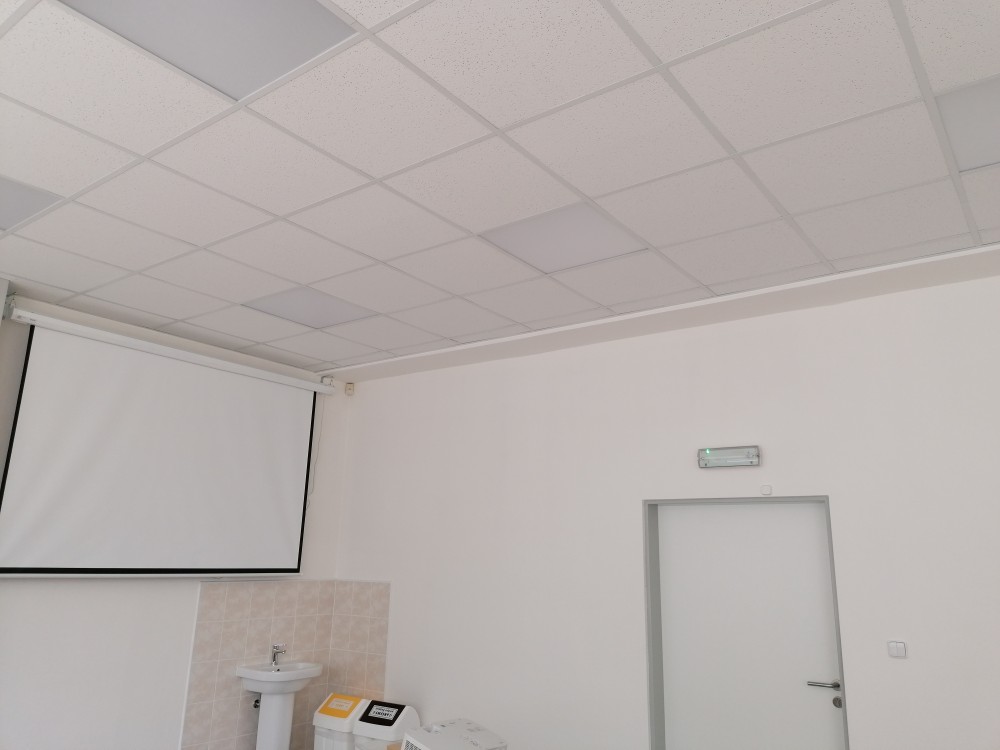 Jedná se o podhled tvořený kostkami položenými na konstrukci. Délka držáku max. do 1m. Výřez zajištěný není. V podhledu je natažený HDMI kabel a silový 220V. Pro bližší představu přikládáme do přílohy fotografii.